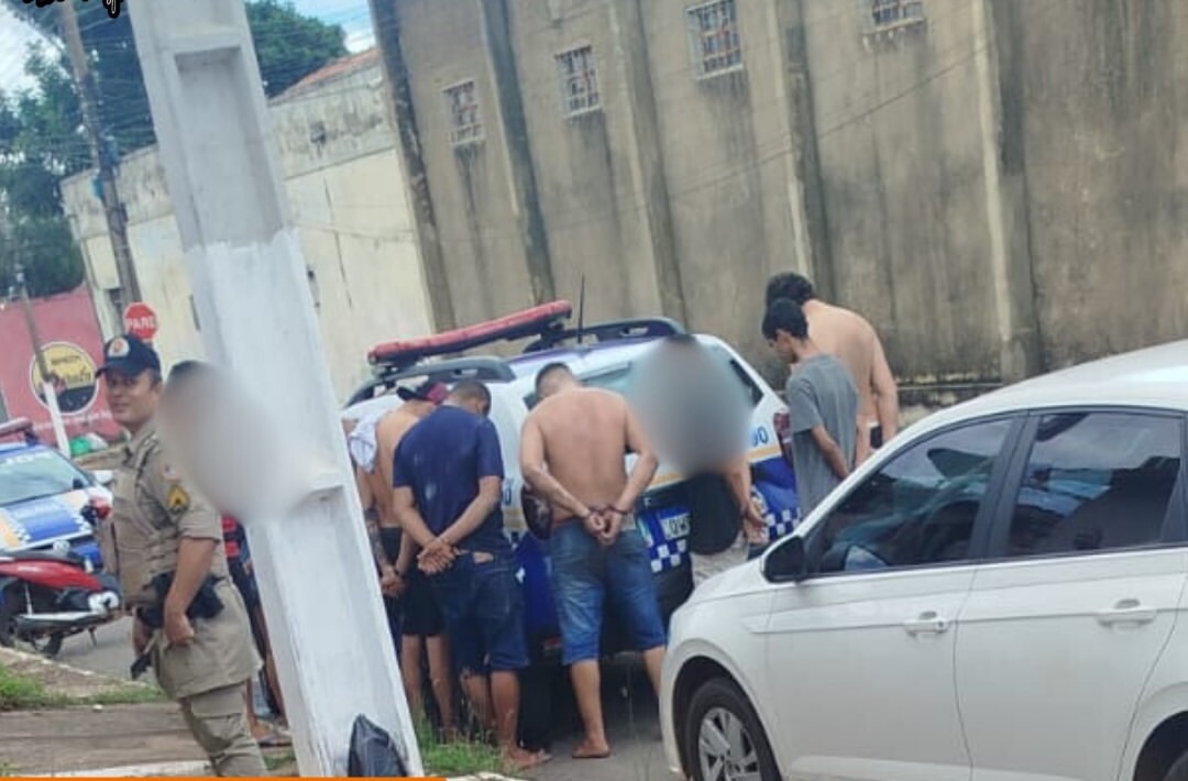 Ao chegarem ao endereço indicado, os policiais flagraram vários indivíduos tentando fugir pelos quintais de residências vizinhas. Durante a ação, um dos suspeitos foi visto portando uma arma de fogo, o que elevou o nível de risco da ocorrência. Diante da tentativa de evasão, os militares montaram um cerco tático e conseguiram capturar todos os envolvidos.