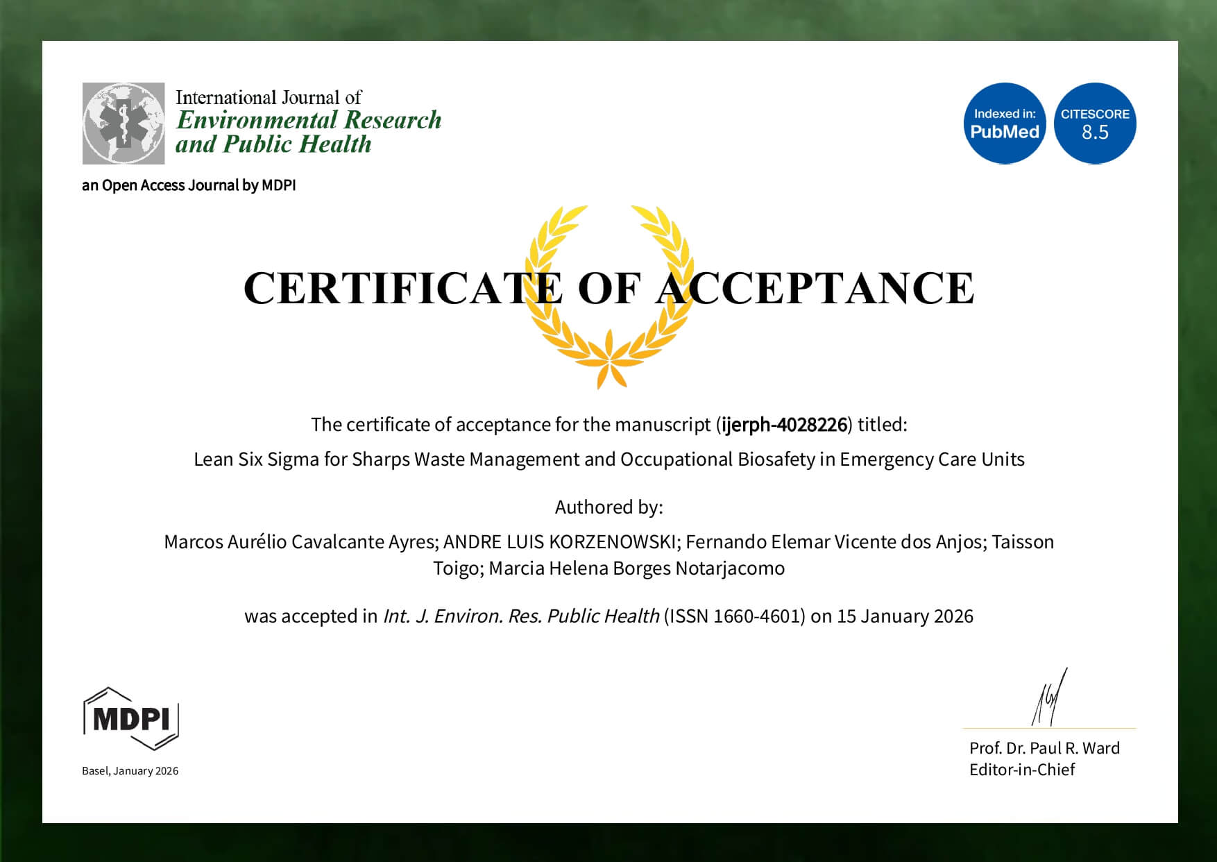 O artigo, intitulado Integrating Lean Six Sigma into Public Health Governance: Improving Sharps Waste Management and Occupational Biosafety in Emergency Care, foi classificado como Q1 na base Scopus, com percentil 92%, posicionando-se entre as revistas científicas mais bem avaliadas e influentes do mundo na área. O trabalho resulta da tese de doutorado desenvolvida pelo docente e reflete a consolidação de uma pesquisa científica aplicada, com relevância acadêmica e social.