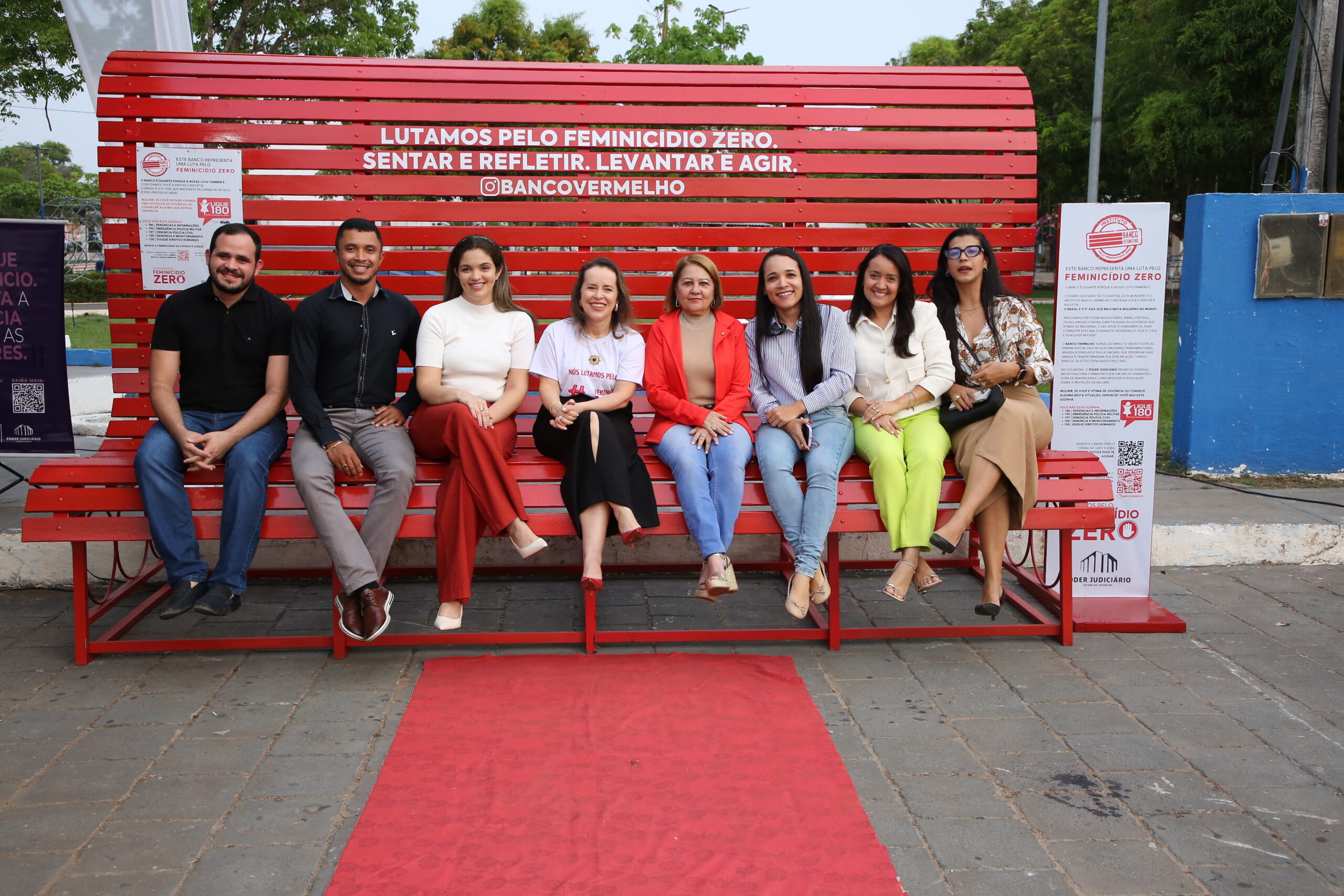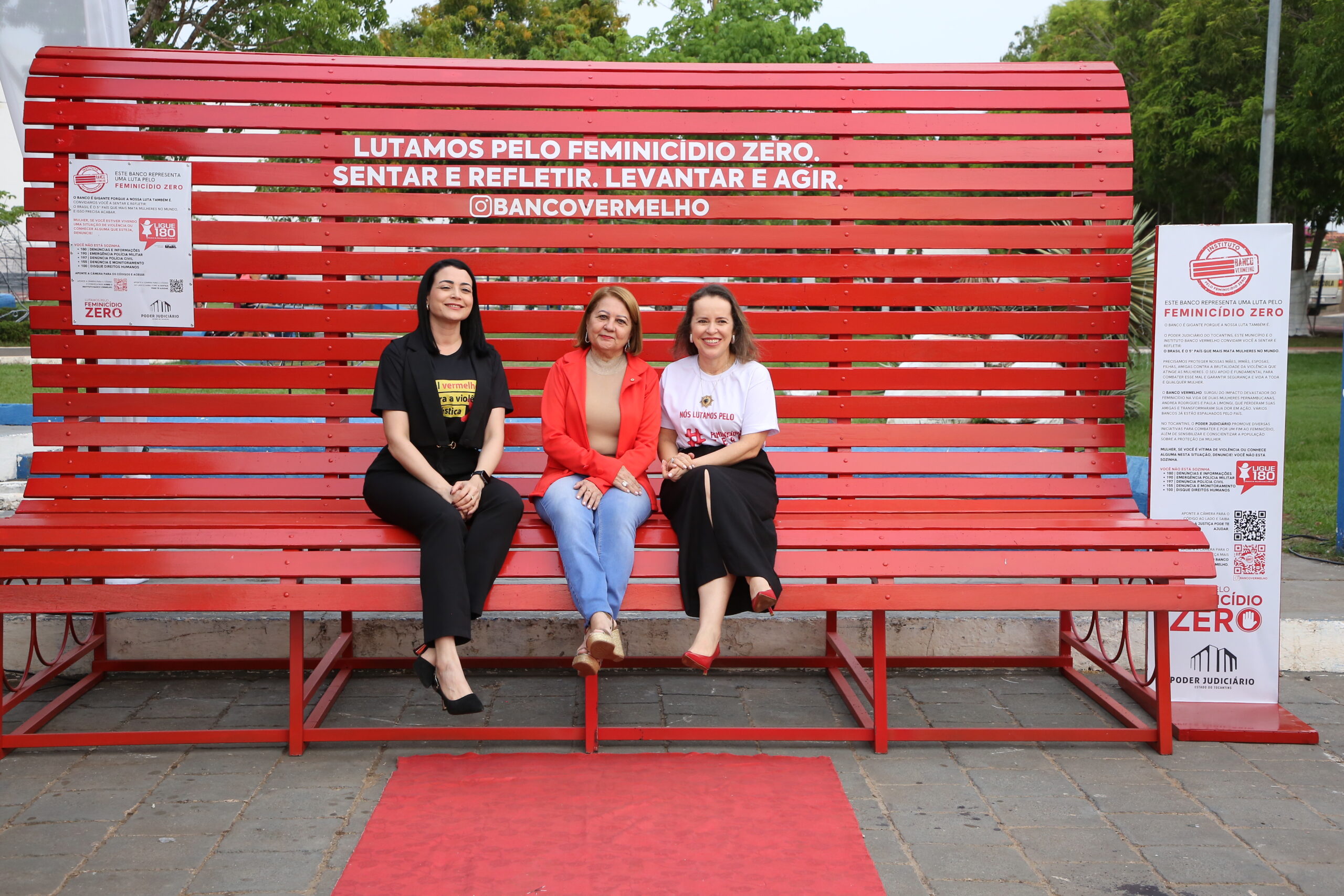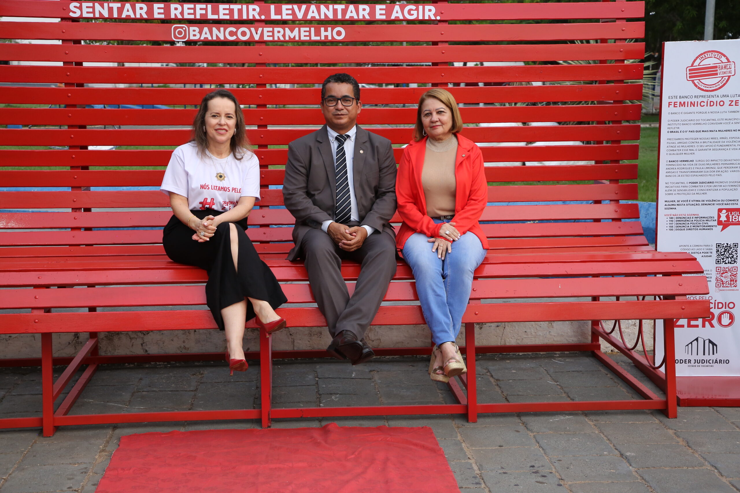 Depois de Colinas, Tocantinópolis, Paraíso, Taguatinga, Miranorte, Porto Nacional e Miracema, agora foi a vez de Araguatins e Augustinópolis, na região do Bico do Papagaio, receberem o grande banco vermelho. Com 4 metros de comprimento por 1,80 metros de altura, a intervenção urbana foi projetada para chamar a atenção e dar visibilidade à causa do feminicídio.