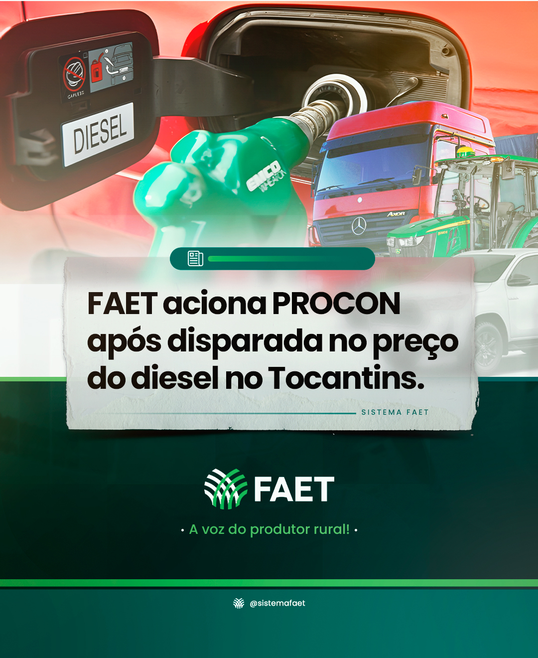 Segundo o presidente da FAET, Paulo Carneiro, “A FAET solicita ao PROCON/TO o monitoramento e a fiscalização da evolução dos preços do óleo diesel no Estado do Tocantins, especialmente após a adoção das medidas federais de desoneração tributária recentemente anunciadas“.