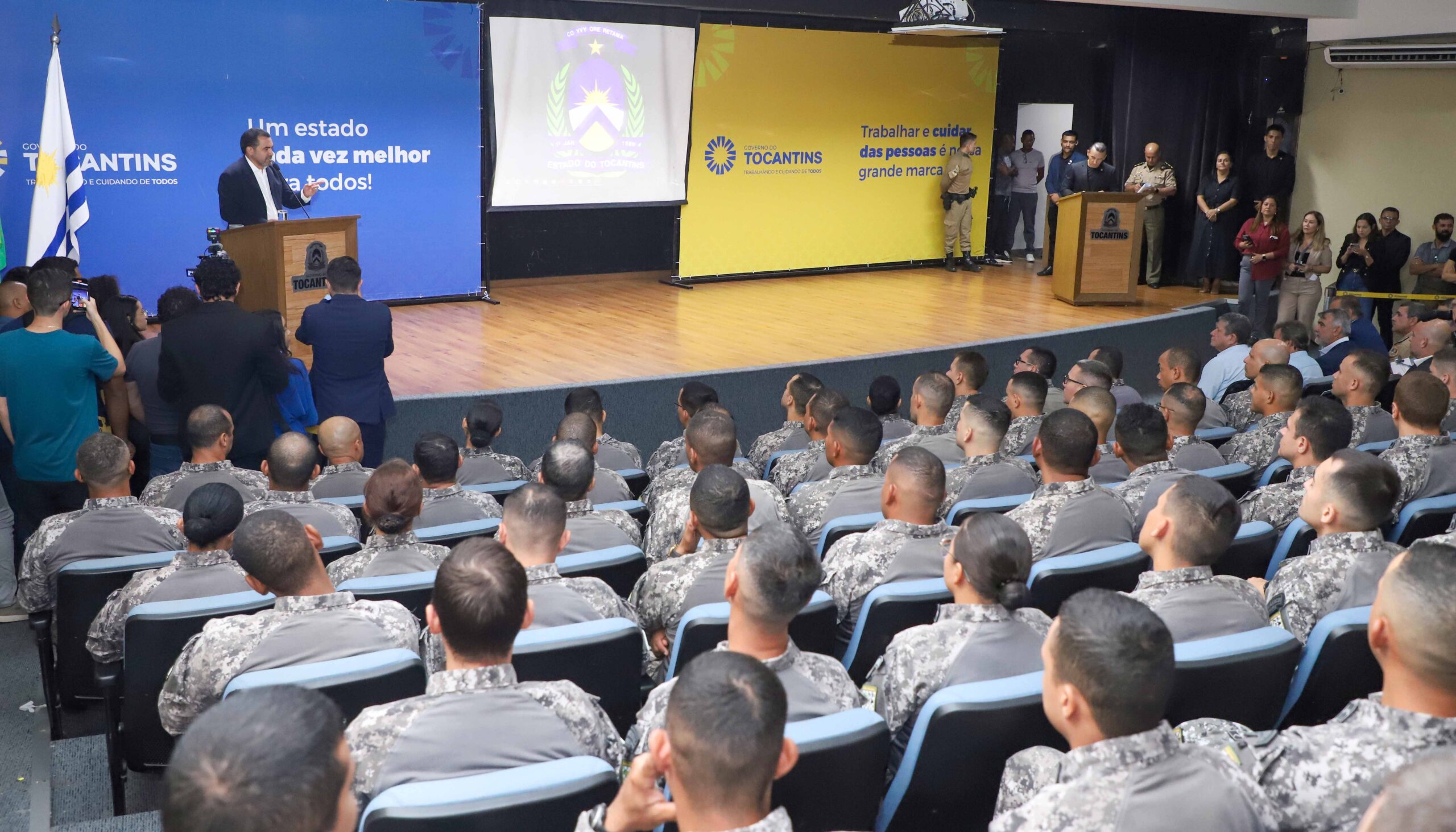 O governador Wanderlei Barbosa participou nesta segunda-feira, 1º de setembro, no auditório do Palácio Araguaia Governador José Wilson Siqueira Campos, da formatura de 100 profissionais da Polícia Militar (PM) que concluíram a 106ª Instrução de Nivelamento de Conhecimento da Força Nacional (INC). A capacitação prepara os agentes para atuação em missões da Força Nacional em todo o país. Na oportunidade, foram entregues veículos que vão compor a frota da PM, com um investimento de R$ 2.205.183,00.