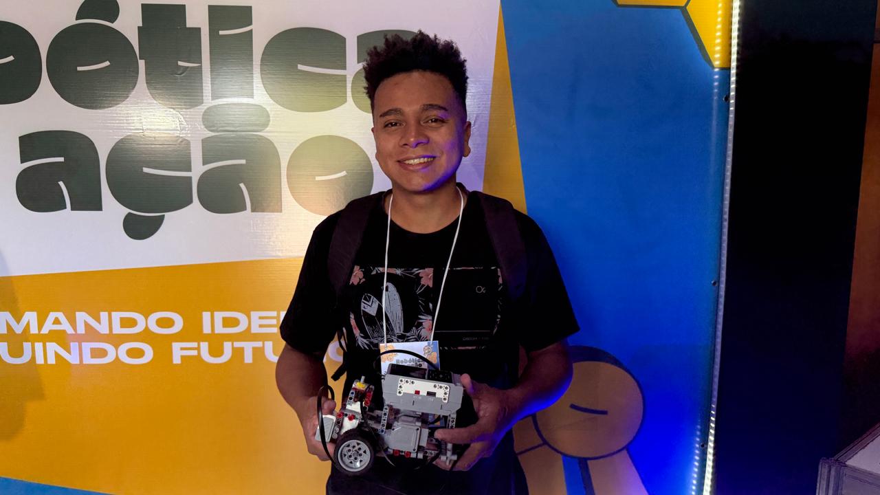 Heitor Barros, aluno da 2ª série do Ensino Médio da Escola Estadual Elizângela Glória Cardoso, em Palmas, está empolgado com as novas possibilidades de aprendizado proporcionadas pela robótica.