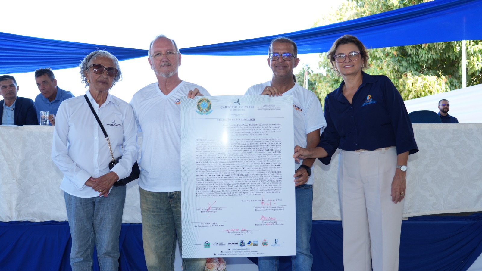 O Governo do Tocantins, por meio da Companhia Imobiliária de Participações, Investimentos e Parcerias (Tocantins Parcerias), em parceria com o Poder Judiciário e as prefeituras realizaram entre os dias 25 e 27 de agosto, a entrega de mais de 430 títulos de propriedade, um marco que mudou a vida de famílias que aguardavam há décadas pela segurança de ter em mãos o documento definitivo de seus imóveis. As entregas passaram por Ponte Alta do Bom Jesus, Novo Alegre, Paranã, Talismã, comunidade Trevo da Praia em Gurupi, Nova Olinda e Presidente Kennedy, levando cidadania e esperança a cada destino.