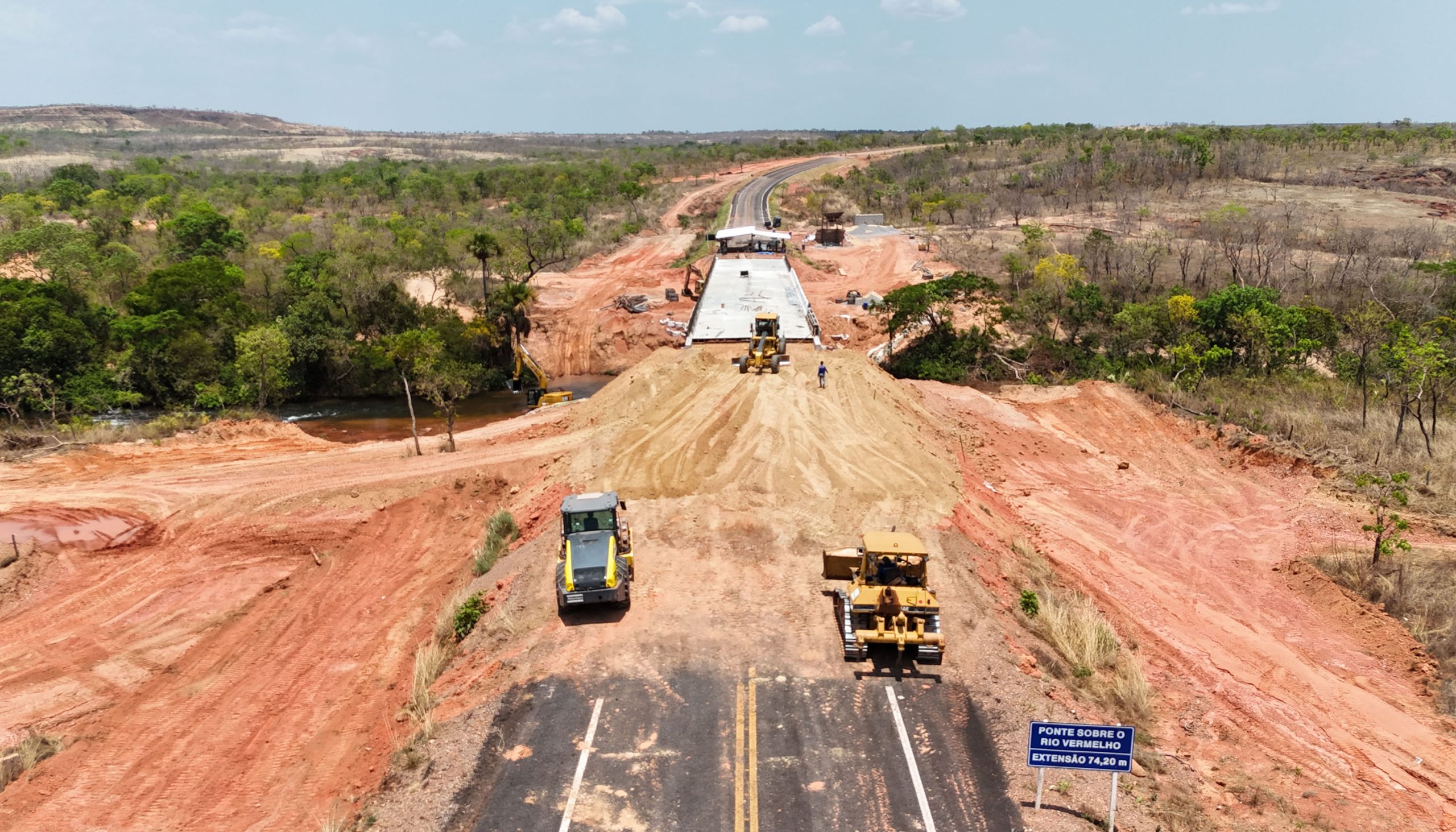 A ponte sobre o rio Vermelho, no trecho da rodovia TO-247 que liga os municípios de Lagoa do Tocantins e São Félix, na região do Jalapão, está 99% concluída. O Governo do Estado, por meio da Agência de Transportes, Obras e Infraestrutura (Ageto), investiu R$ 4.399.200,28 na obra, que está prevista para ser inaugurada em dezembro.