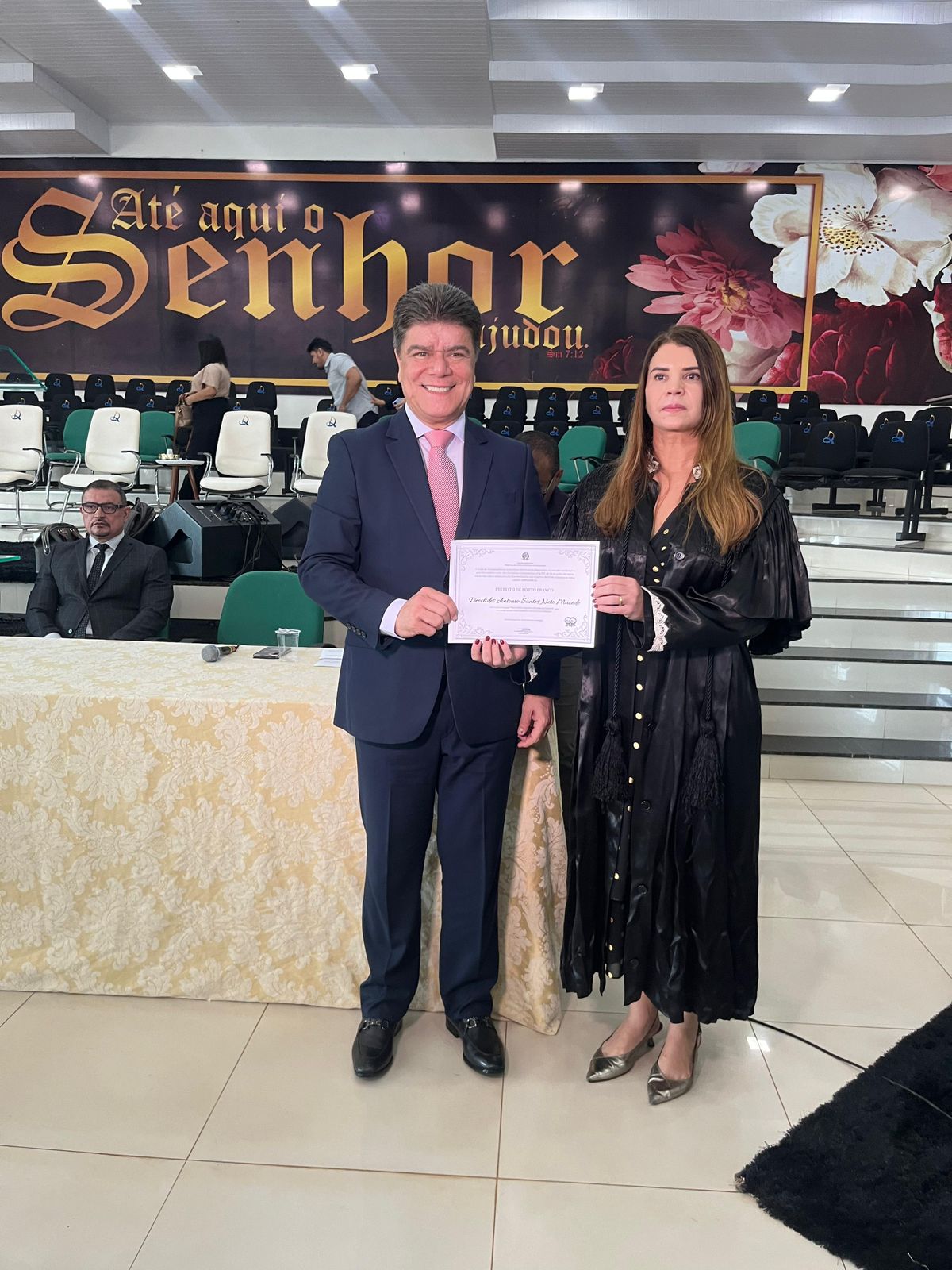 A Sessão Solene de Diplomação dos Eleitos, Reeleitos e Suplentes do Pleito de 2024, realizada na Igreja Assembleia de Deus, foi conduzida pela juíza da 46ª Zona Eleitoral, Dra. Alessandra Lima Silva.