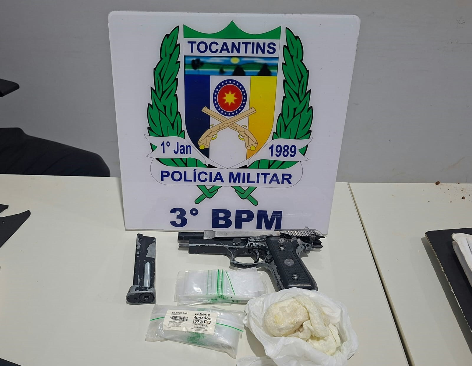A Polícia Militar do Tocantins (PMTO) prendeu um homem em flagrante por tráfico de drogas na madrugada da última quinta-feira, 16, em Bom Jesus do Tocantins. A ocorrência foi registrada em uma residência na Rua São José, no centro da cidade, onde os policiais apreenderam cerca de 105 gramas de substância análoga à cocaína, além de 180 embalagens plásticas utilizadas para acondicionar entorpecentes e um simulacro de arma de fogo.