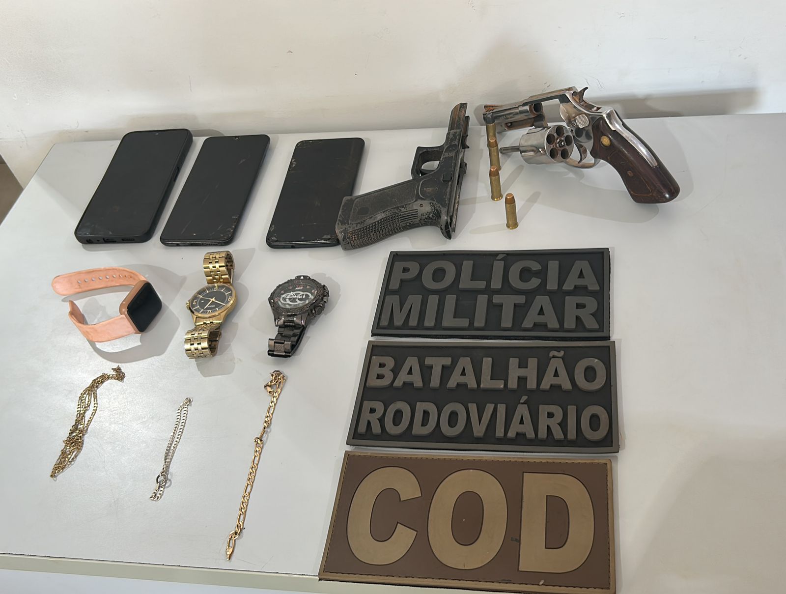 Após serem alcançados, durante a abordagem, os militares encontraram munições calibre .38 com o homem de 23 anos. Na varredura do trajeto percorrido, foram localizados um revólver calibre .38 e um simulacro de arma de fogo.