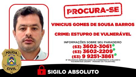 Na última quinta-feira, 24, policiais civis da 5ª Delegacia de Palmas, com apoio de agentes da 2ª Delegacia Especializada de Repressão às Infrações de Menor Potencial Ofensivo (Deimpo – Palmas), deram cumprimento a mandado de prisão preventiva em desfavor de um homem de iniciais E.R.A.S., de 61 anos, o qual é foragido da Comarca de Irecê, no Estado da Bahia, onde responde pelo crime de estupro de vulnerável.