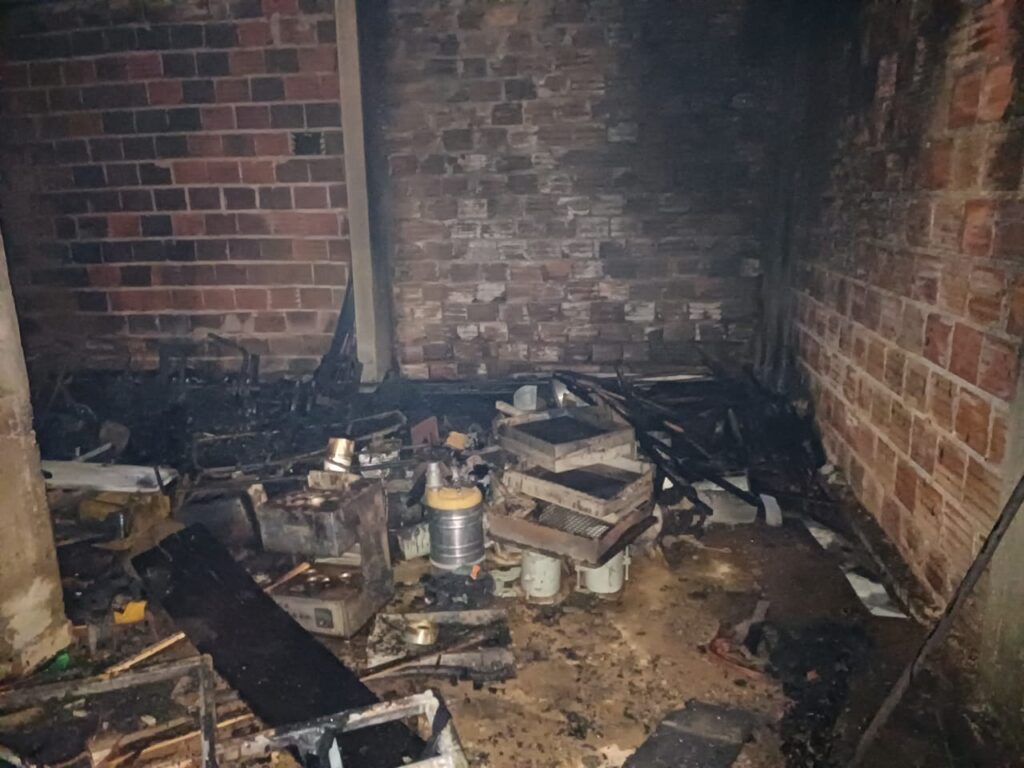 Os bombeiros realizaram o isolamento total da área com o apoio da Polícia Militar e iniciaram o combate ao fogo pela porta principal e por uma janela nos fundos. As chamas estavam concentradas nos materiais armazenados no solo, sendo completamente extintas após alguns minutos de trabalho intenso.