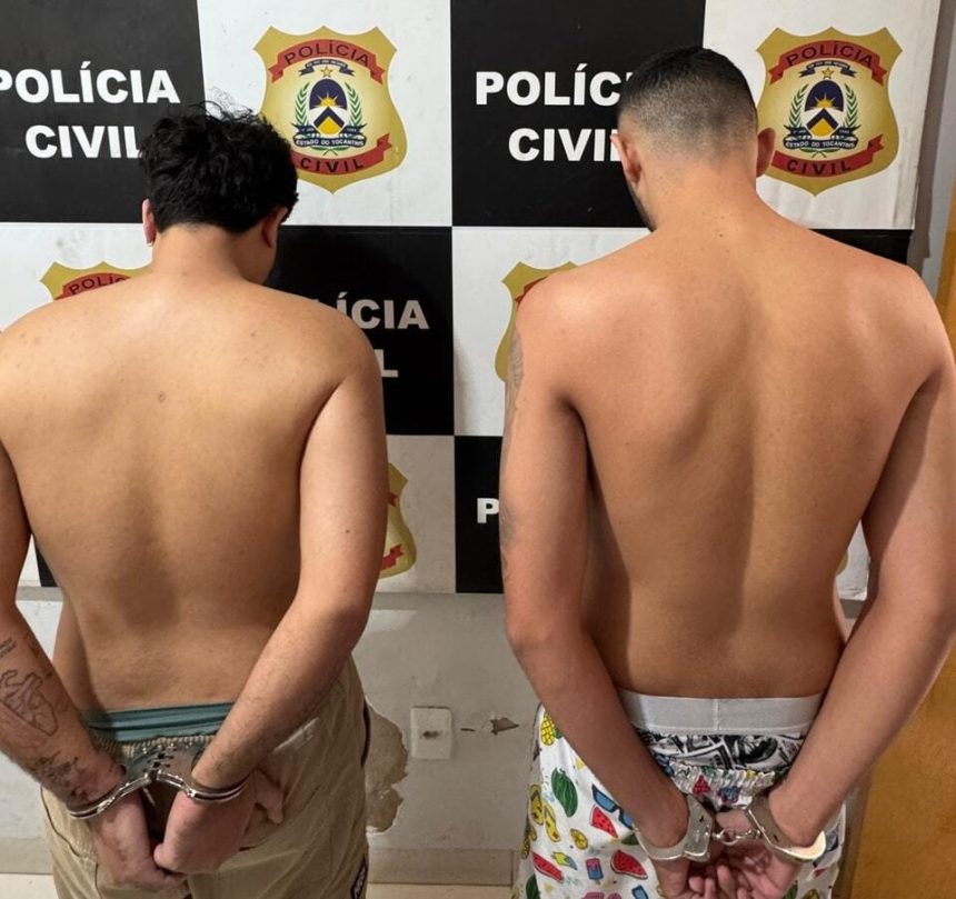 Na unidade policial, o delegado plantonista deu cumprimento ao mandado de prisão preventiva contra J.V.G.H., pelo crime de peculato-furto. Já J.V.M.G.B. foi autuado em flagrante por tráfico de drogas. Após as providências legais cabíveis, os dois foram recolhidos à Unidade Penal Regional de Gurupi, onde permanecerão à disposição da Justiça.