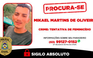 A Polícia Civil do Tocantins está à procura de Mikael Martins de Oliveira, investigado por tentativa de feminicídio contra sua…
