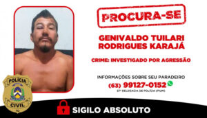 A Polícia Civil do Tocantins, por meio da 57ª Delegacia de Polícia de Pium, está à procura de Genivaldo Tuilari…