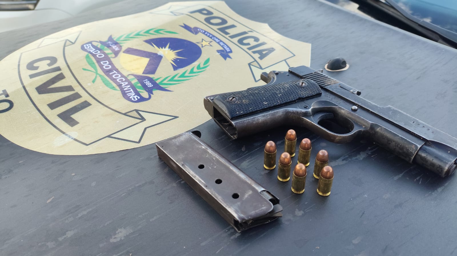 Inicialmente, os policiais civis foram até uma fazenda, localizada na zona rural de Paranã, onde localizaram M.P.S. e deram cumprimento aos dois mandados de prisão que existiam contra ele. No entanto, no interior do alojamento em que estava, os agentes localizaram e apreenderam, uma espingarda calibre 22, 54 munições de calibre 380, um carregador do mesmo calibre, bem como um revólver calibre 32 e dez munições do mesmo calibre.