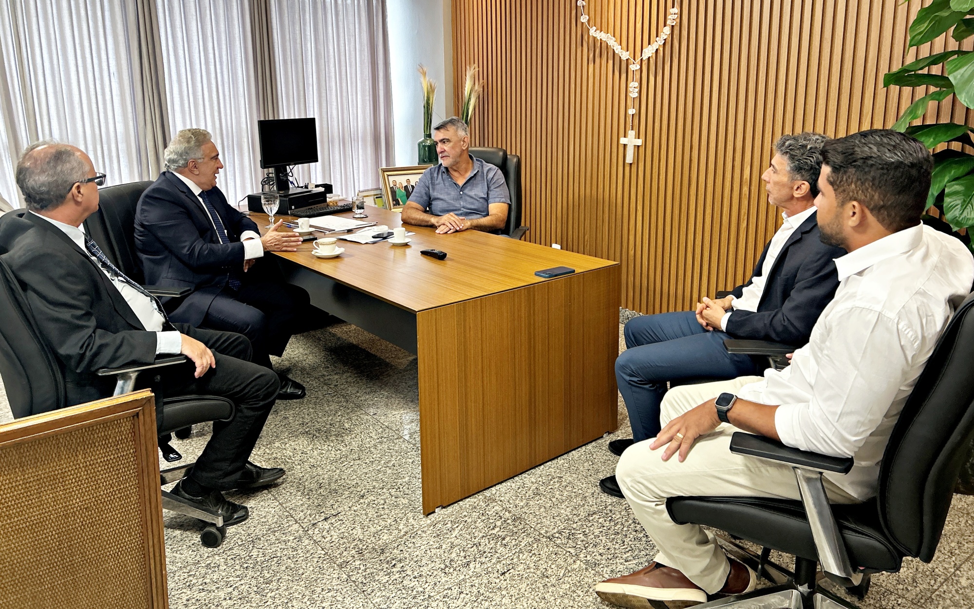 O presidente da Assembleia Legislativa do Tocantins (Aleto), deputado Amélio Cayres (Republicanos), recebeu, nesta sexta-feira, 5, uma visita institucional do governador em exercício, Laurez Moreira (PSD), e de assessores diretos do governo interino.